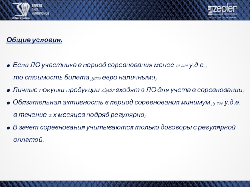 продукции Zepter входят в ЛО для учета в соревновании;