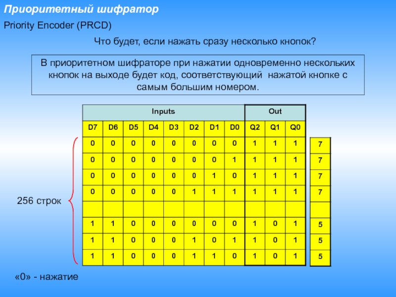 «0» - нажатие