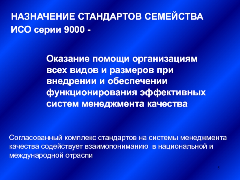 Слайд 5НАЗНАЧЕНИЕ СТАНДАРТОВ СЕМЕЙСТВА