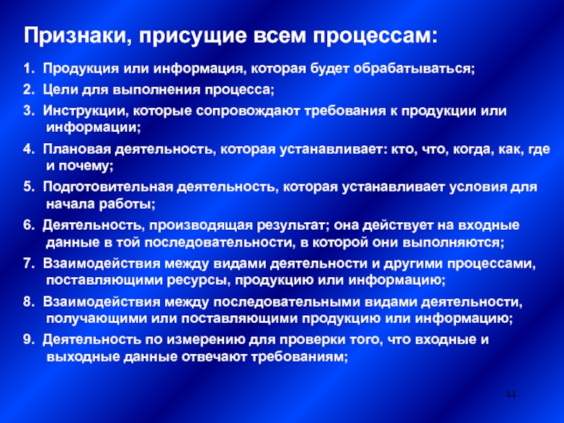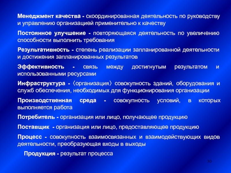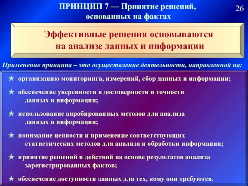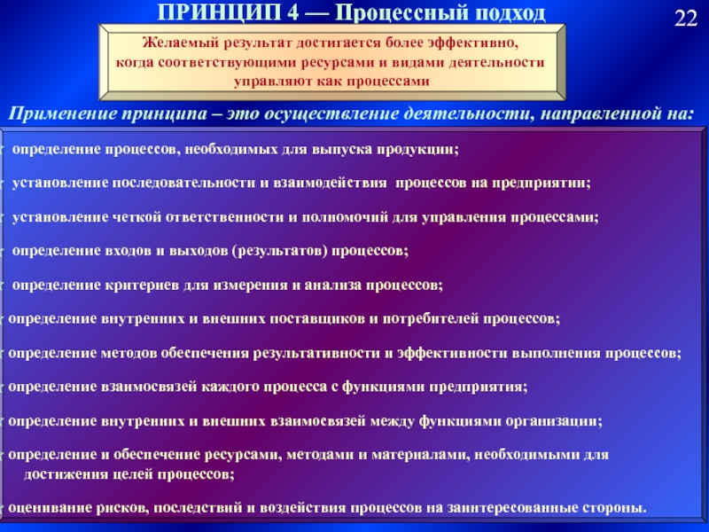 Они декларируют восемь принципов современного менеджмента, устанавливают процессный подход к созданию и внедрению системы менеджмента качества и минимальные универсальные требования к самой системе.