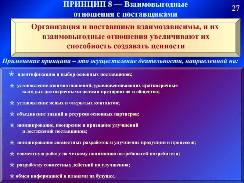 Принцип 8 – Взаимовыгодные отношения с поставщиками.