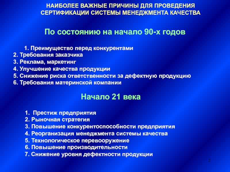 Слайд 2НАИБОЛЕЕ ВАЖНЫЕ ПРИЧИНЫ ДЛЯ ПРОВЕДЕНИЯ