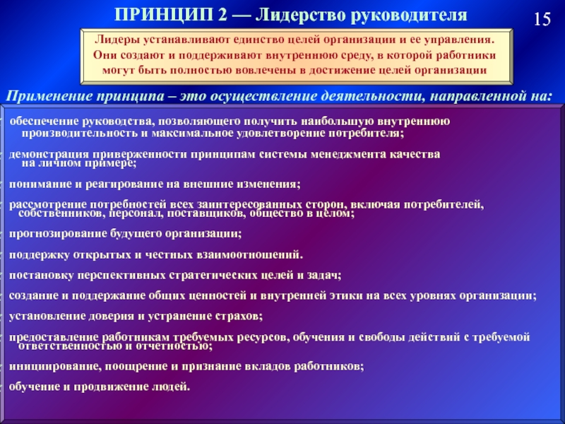 Слайд 15ПРИНЦИП 2 — Лидерство руководителя