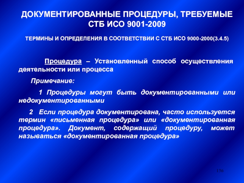 Слайд 136ДОКУМЕНТИРОВАННЫЕ ПРОЦЕДУРЫ, ТРЕБУЕМЫЕ
