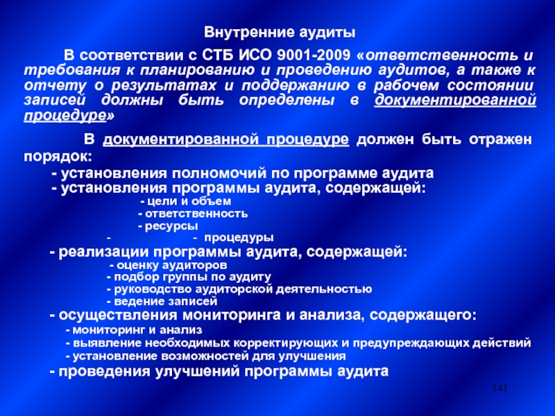 9001-2009 «ответственность и требования к планированию и проведению аудитов, а