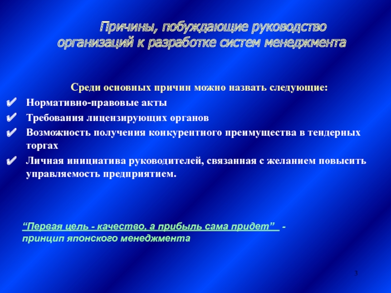 Причины, побуждающие руководство организаций к разработке систем менеджмента