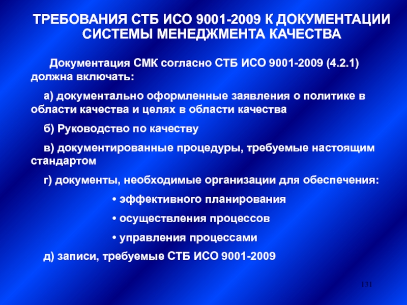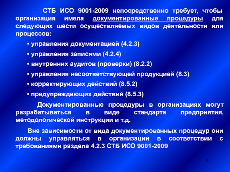 Слайд 137 СТБ ИСО 9001-2009 непосредственно требует, чтобы