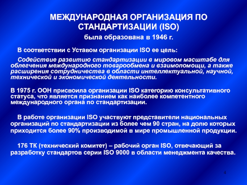 Слайд 4МЕЖДУНАРОДНАЯ ОРГАНИЗАЦИЯ ПО СТАНДАРТИЗАЦИИ (ISO)