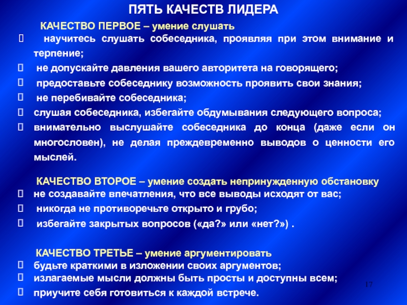КАЧЕСТВО ПЕРВОЕ – умение слушать