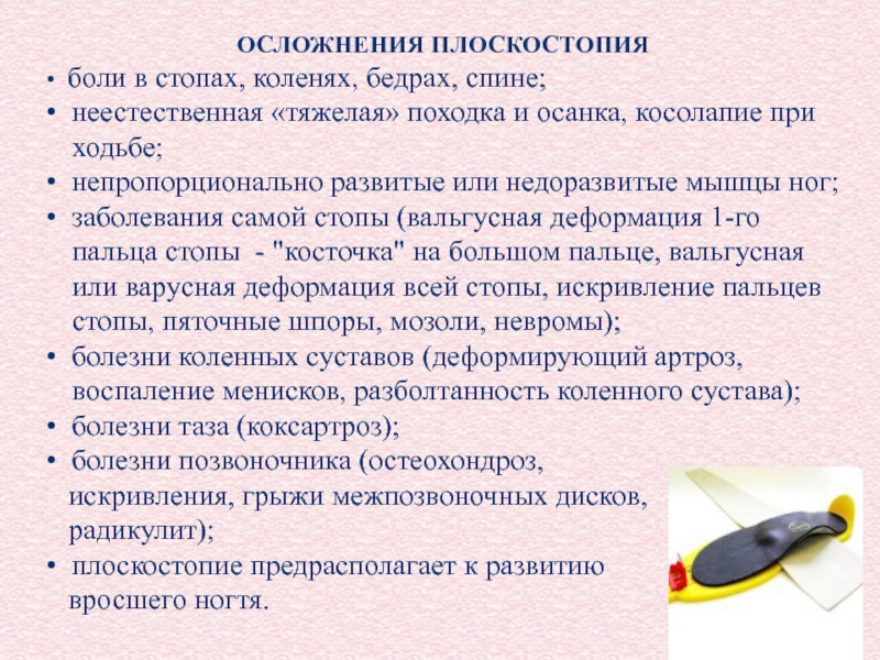 Слайд 32ОСЛОЖНЕНИЯ ПЛОСКОСТОПИЯ