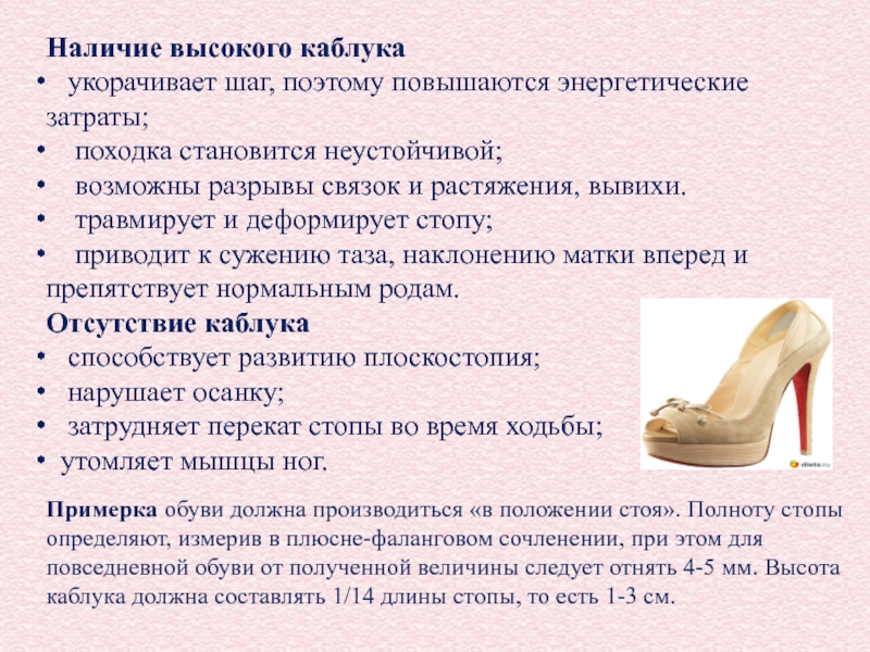 Слайд 30Наличие высокого каблука