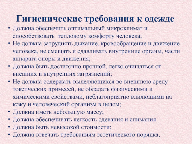 Гигиенические требования к одежде