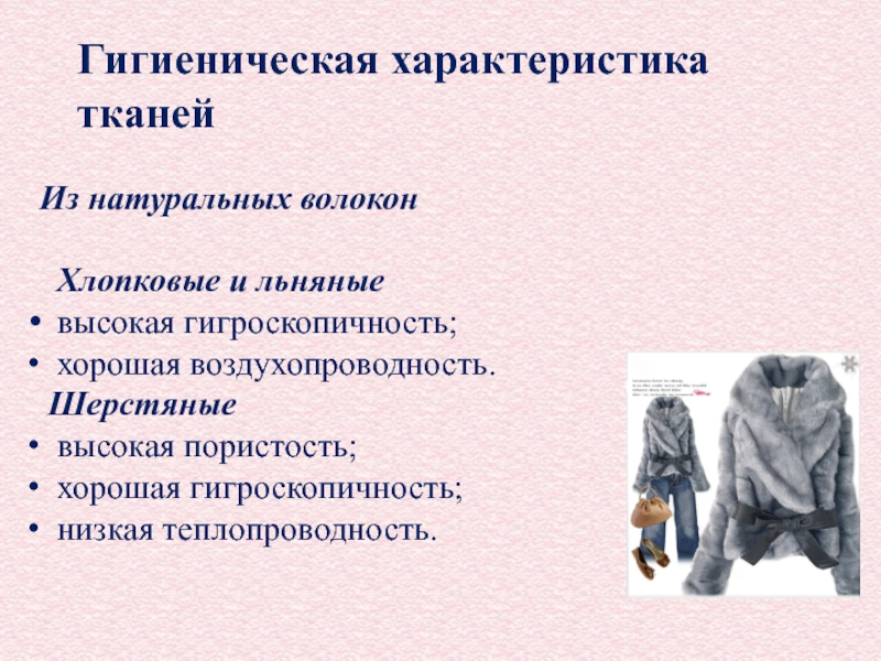 Слайд 17Гигиеническая характеристика тканей