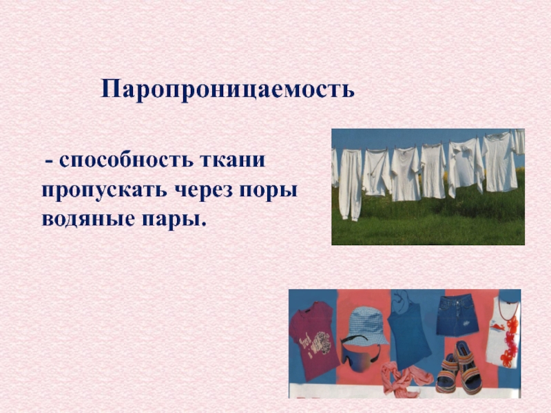 - способность ткани пропускать через поры