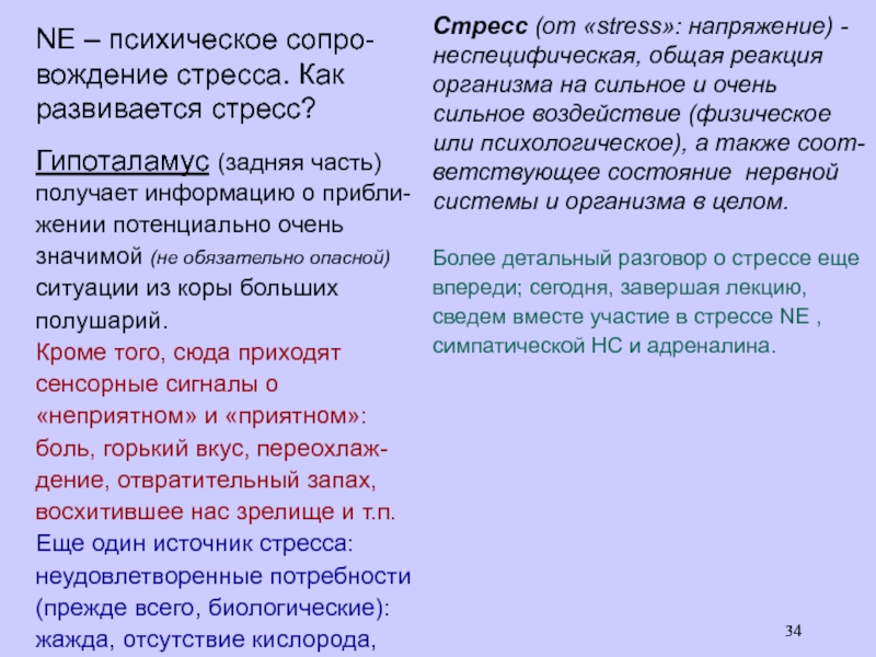 NE – психическое сопро-вождение стресса. Как развивается стресс?