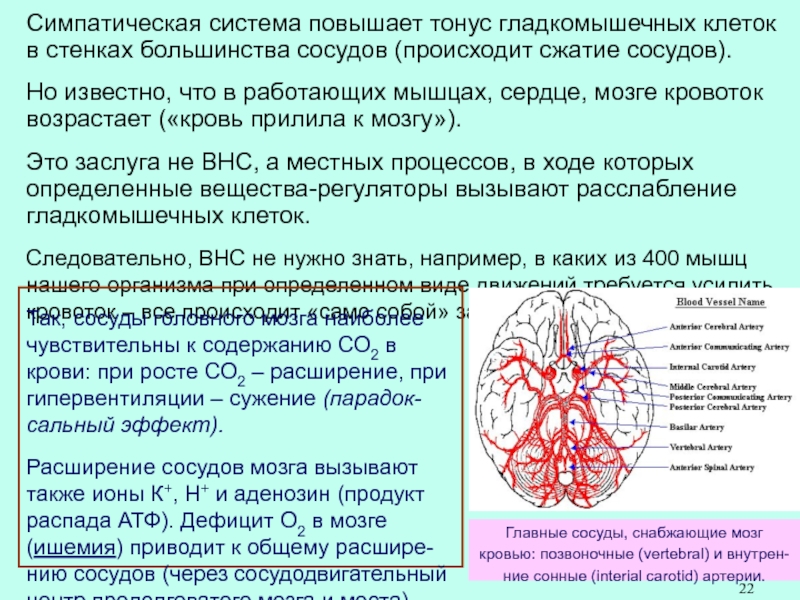 Так, сосуды головного мозга наиболее чувствительны к содержанию СО2 в крови: при росте СО2 – расширение, при