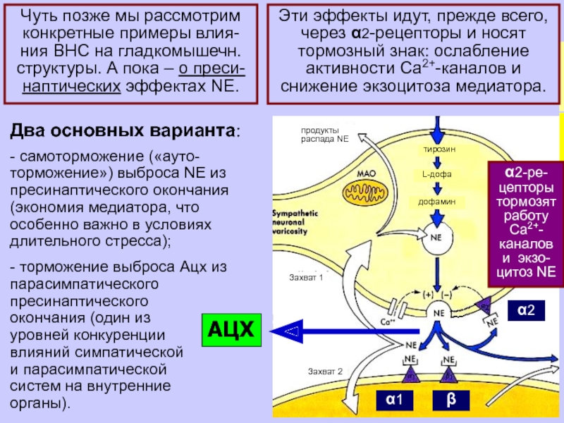 Чуть позже мы рассмотрим конкретные примеры влия-ния ВНС на гладкомышечн. структуры. А пока – о преси-наптических эффектах NЕ.