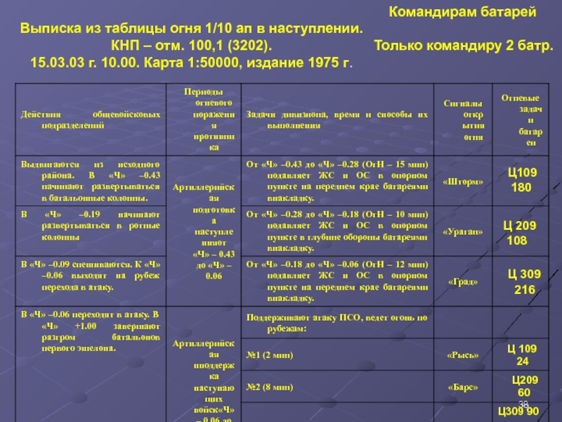 Слайд 45ЗАПИСЬ ИСЧИСЛЕННЫХ УСТАНОВОК ДЛЯ СТРЕЛЬБЫ_1_ОРУДИЯ