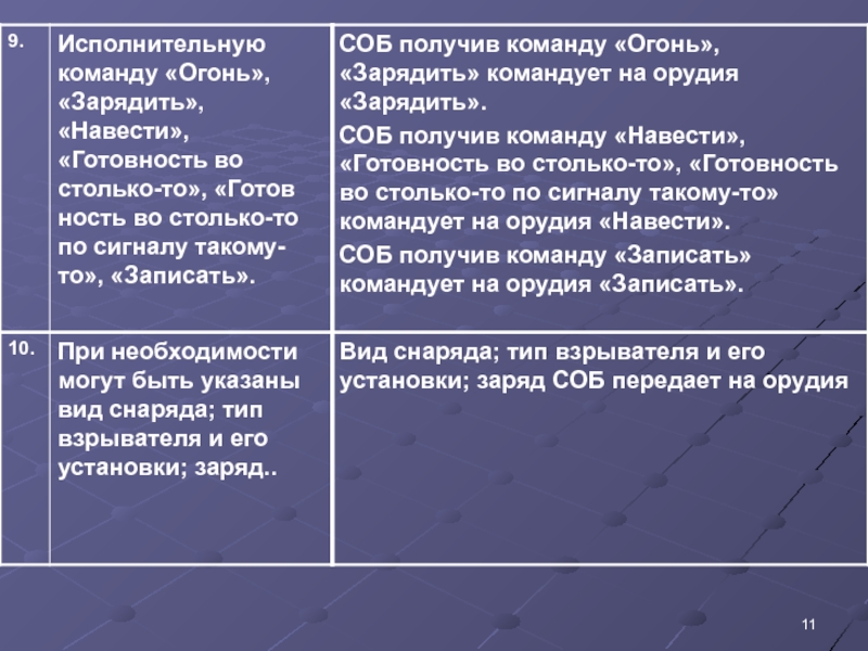 Слайд 30СОБ командует: «Прицел 151, 4 снаряда, беглый, зарядить». По готовности