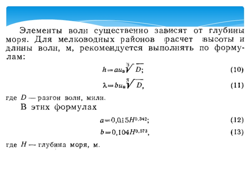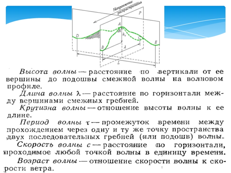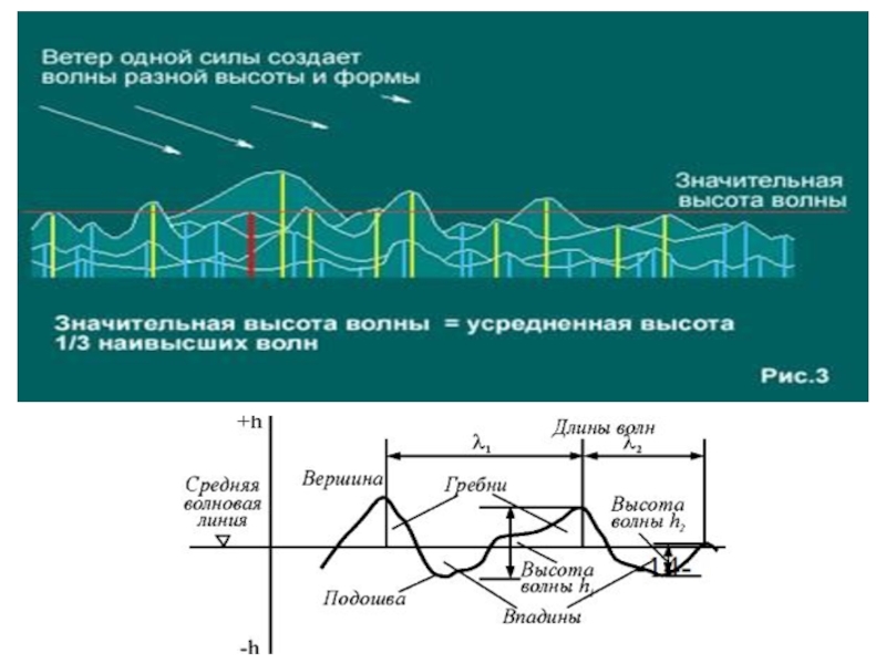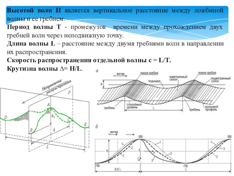 Слайд 11Высотой волн Н является вертикальное расстояние между ложбиной волны и