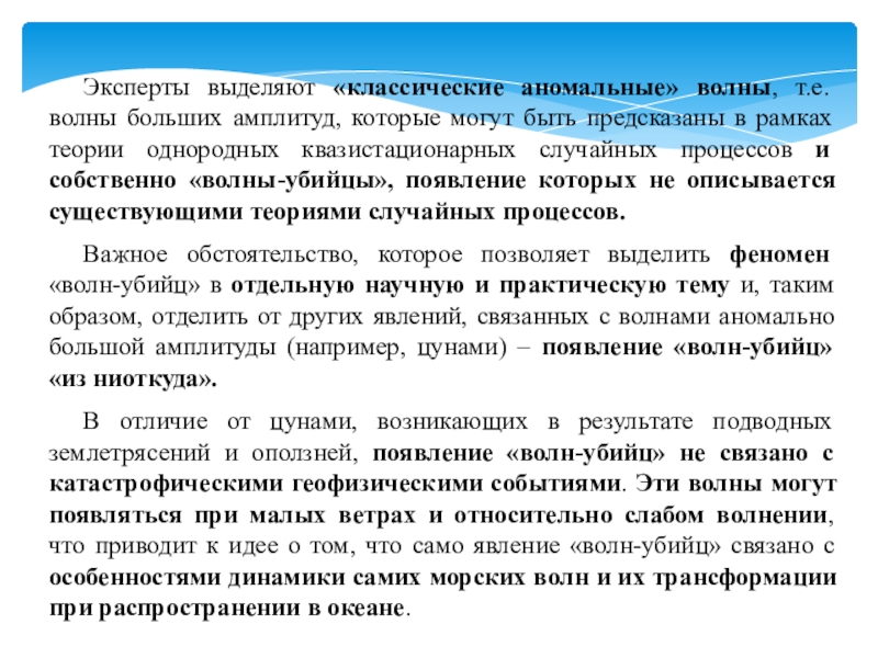 Слайд 26 Эксперты выделяют «классические аномальные» волны, т.е. волны больших амплитуд, которые