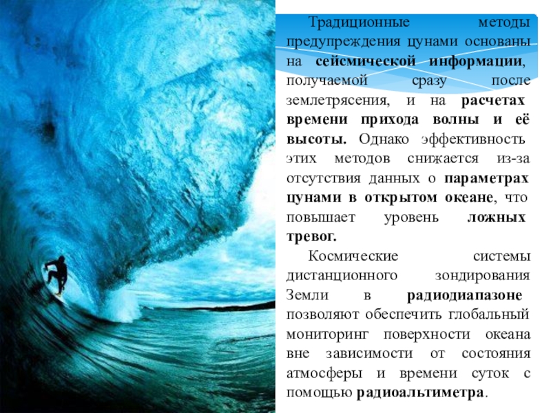 Слайд 31 Традиционные методы предупреждения цунами основаны на сейсмической информации, получаемой сразу