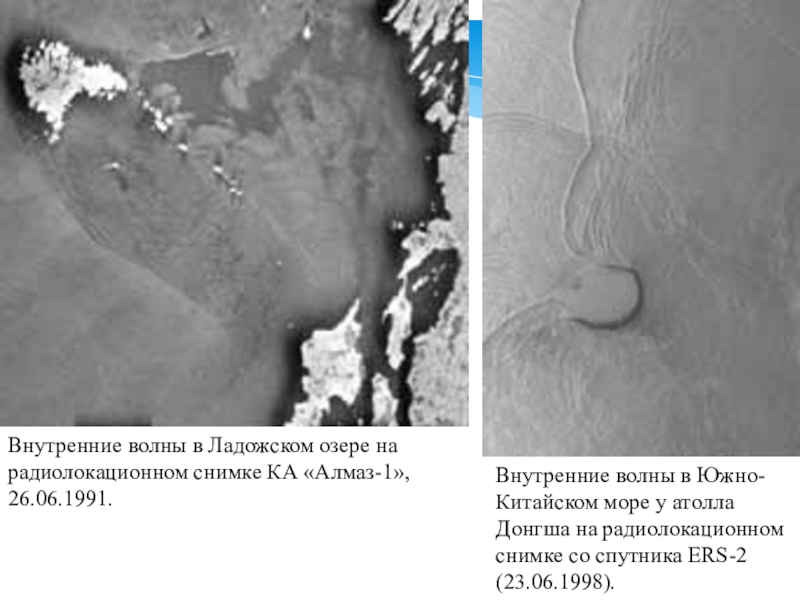 Слайд 41Внутренние волны в Южно-Китайском море у атолла Донгша на радиолокационном