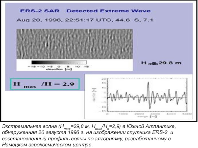 Слайд 25Экстремальная волна (Hmax=29,8 м, Hmax/Hs=2,9) в Южной Атлантике, обнаруженная 20