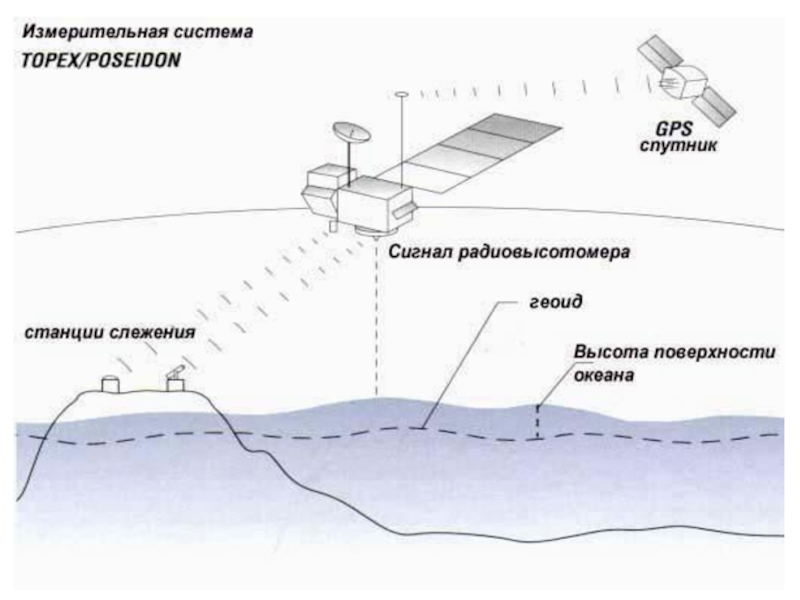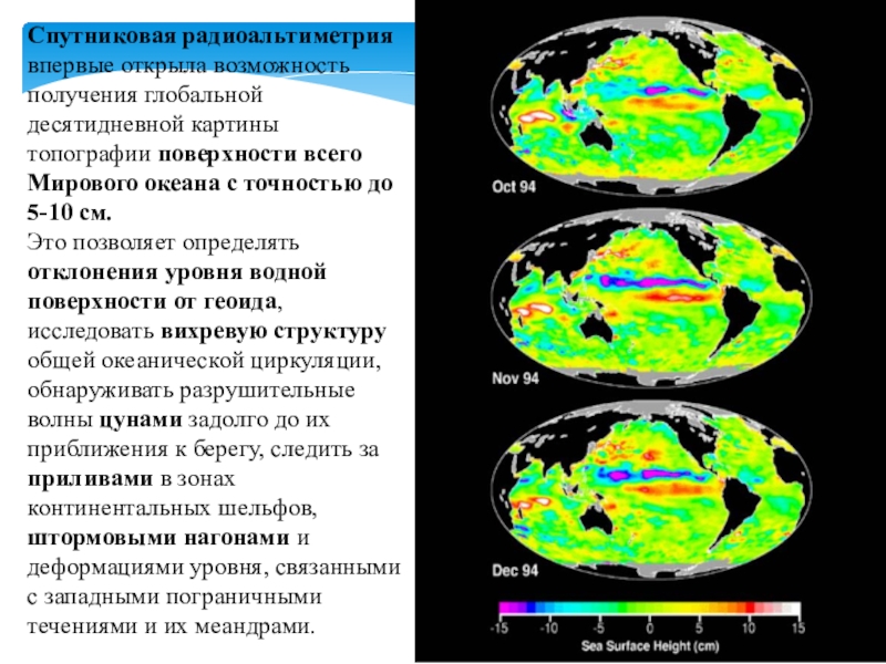 Слайд 4Спутниковая радиоальтиметрия впервые открыла возможность получения глобальной десятидневной картины топографии
