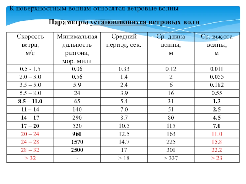 Слайд 17К поверхностным волнам относятся ветровые волны