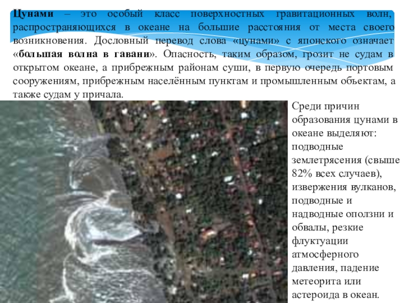 Слайд 29Цунами – это особый класс поверхностных гравитационных волн, распространяющихся в