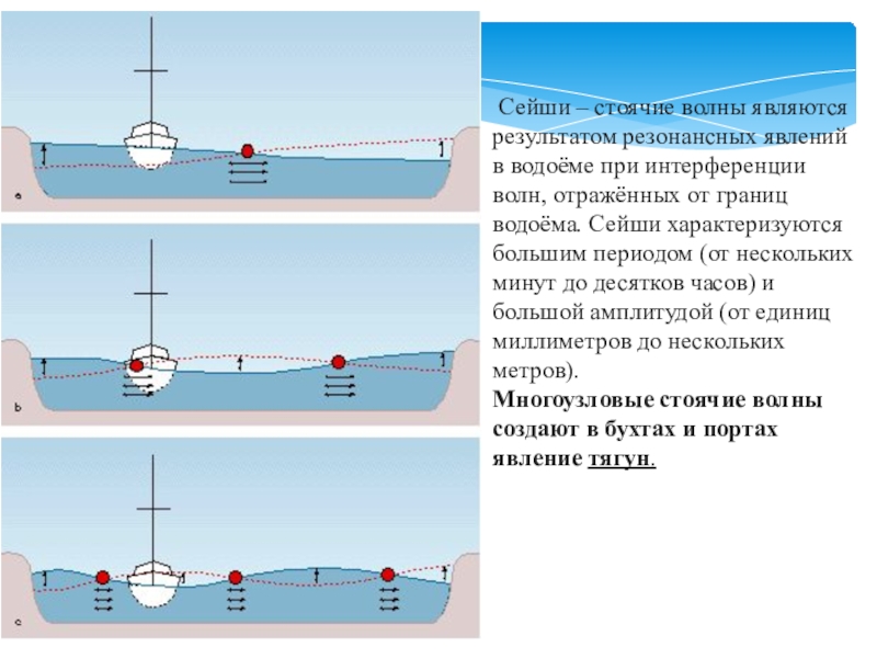 Слайд 35 Сейши – стоячие волны являются результатом резонансных явлений в