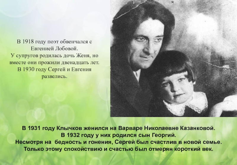 В 1931 году Клычков женился на Варваре Николаевне Казанковой.