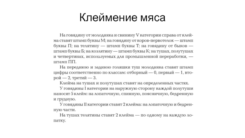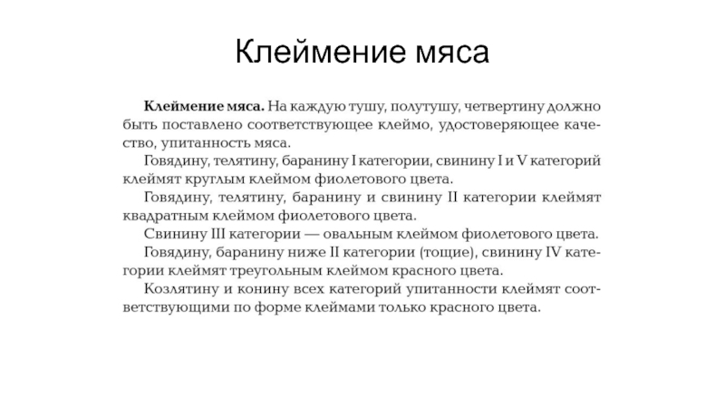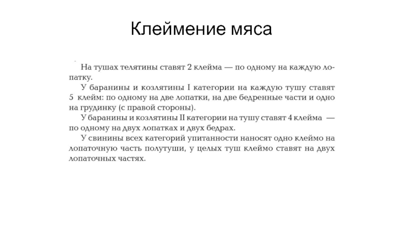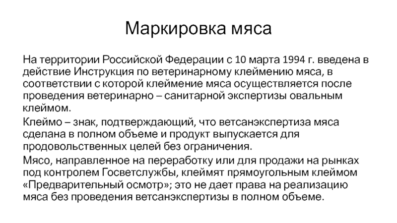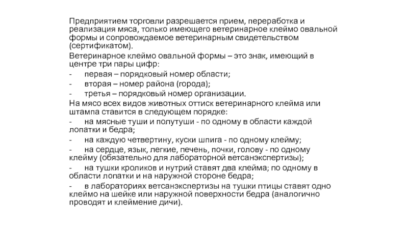 Слайд 40Предприятием торговли разрешается прием, переработка и реализация мяса, только имеющего