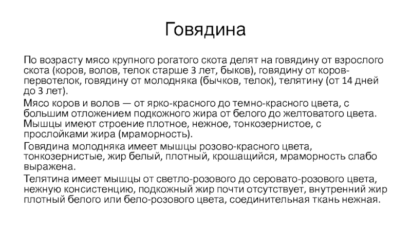 По возрасту мясо крупного рогатого скота делят на говядину от