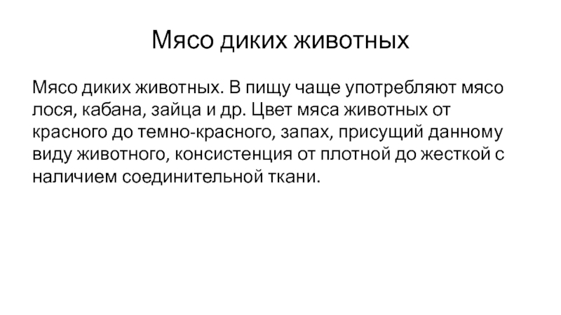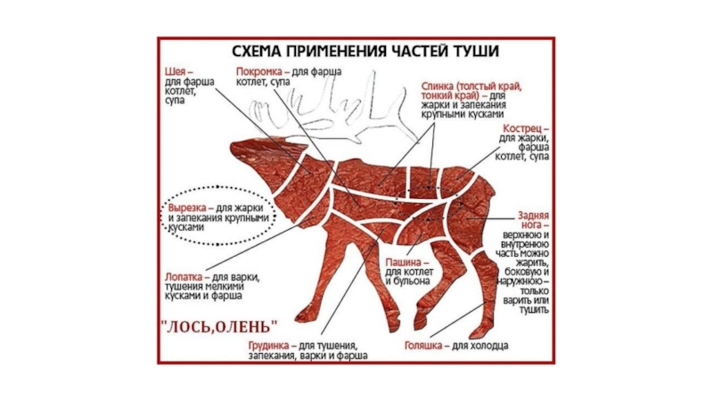 лося, кабана, зайца и др. Цвет мяса животных от красного