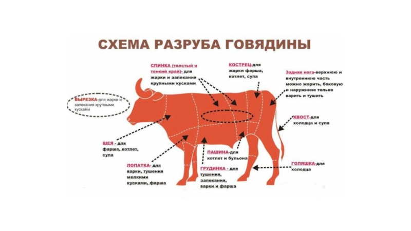 от коров-первотелок, говядину от молодняка (бычков, телок), телятину (от 14 дней до 3 лет).