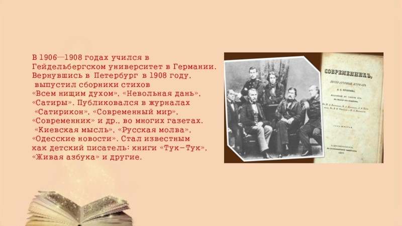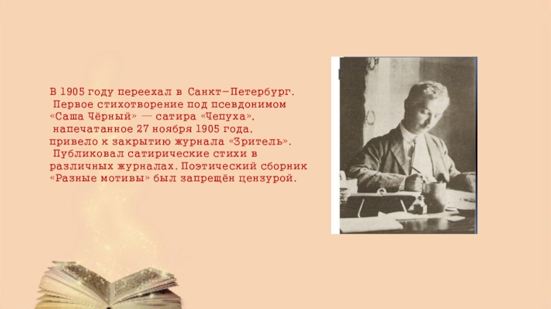 Слайд 1140 лет со дня рождения поэта, писателя, переводчика С. Черного