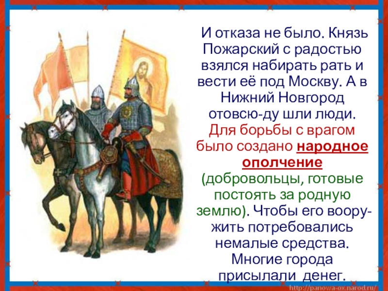 Слайд 13 И отказа не было. Князь Пожарский с радостью взялся набирать