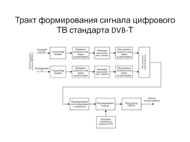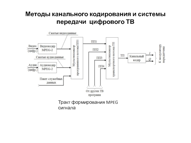 1.Преобразование передаваемых сообщений (входных аналоговых сигналов) в цифровые и формирование передаваемых цифровых потоков (кодирование, шифрование, формирование пакетов и групповых сигналов в соответствии с видом сигнала и конкретным стандартом цифрового кодирования, которые далее могут передаваться, в зависимости от назначения передатчика, с использованием цифровых или аналоговых видов модуляции.