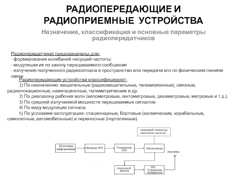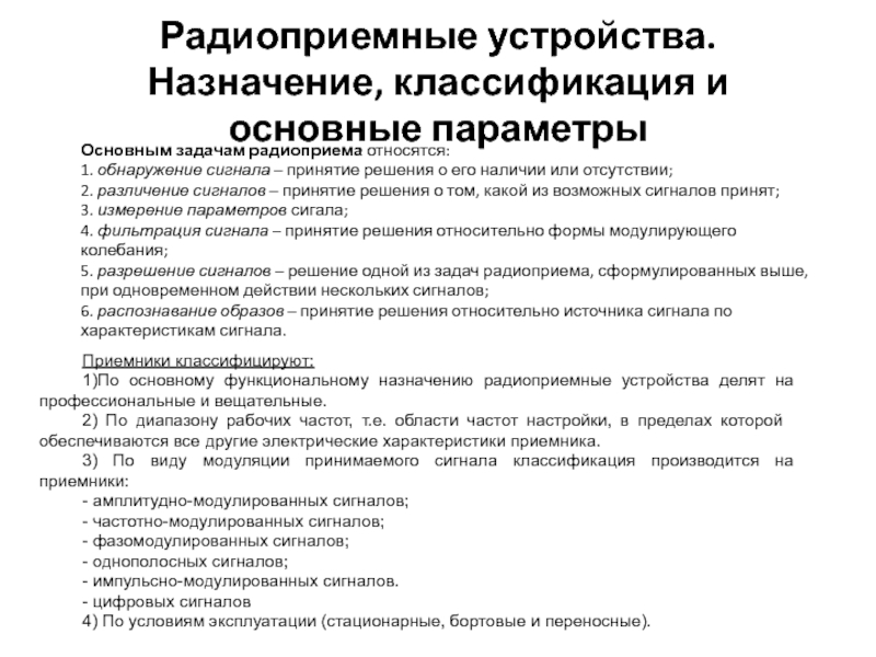 1)По основному функциональному назначению радиоприемные устройства делят на профессиональные и вещательные.