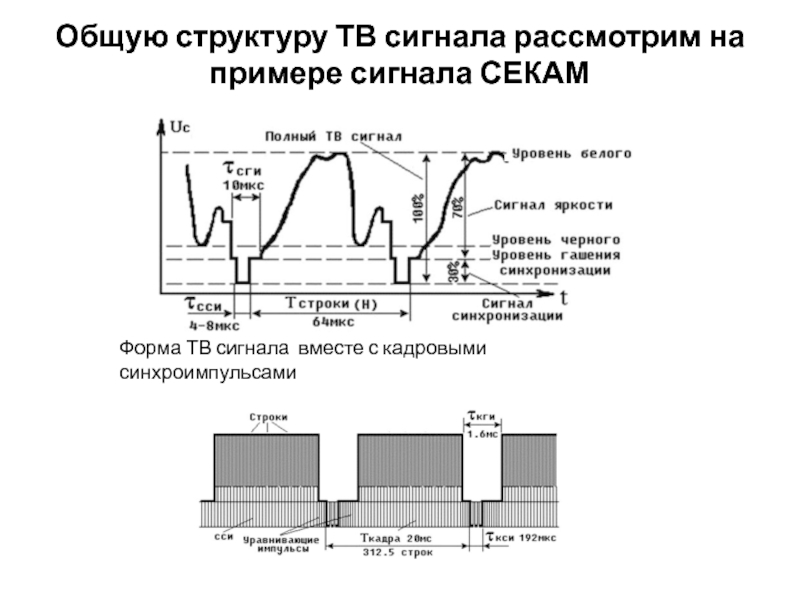 SECAM (Sequential Color With Memor) Этот стандарт, как и PAL, имеет большое вертикальное разрешение (625 строк). При этом передача двух цветоразностных сигналов производится последовательно, а сигнал яркости — непрерывно, что позволяет получать устойчивый оттенок и стабильную насыщенность изображения.