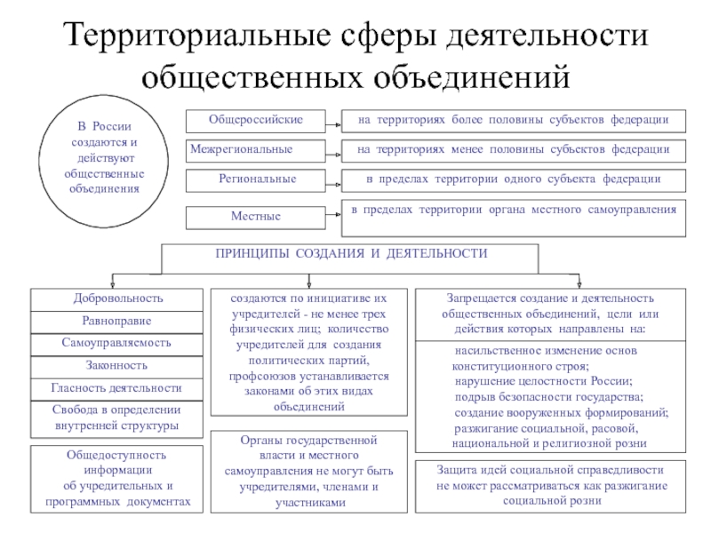 Слайд 16Территориальные сферы деятельности общественных объединений