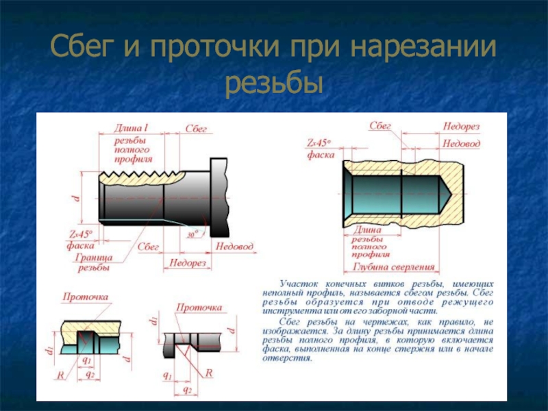 Изображение сбегов и проточек при изготовлении деталей с резьбой