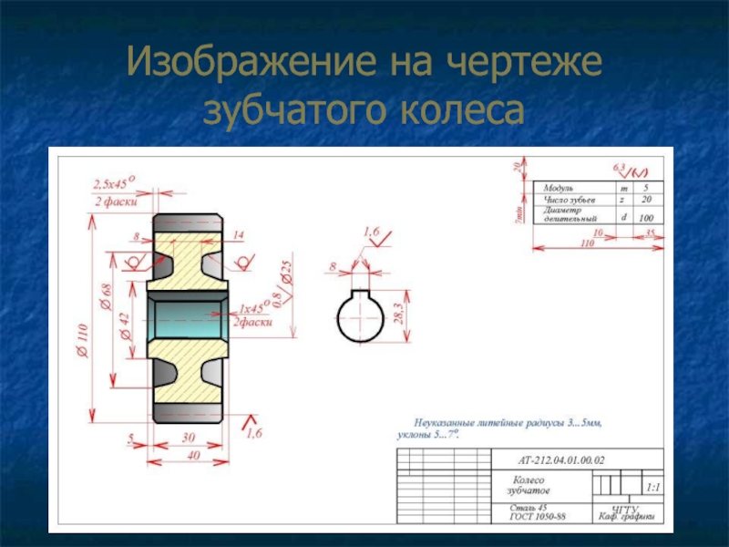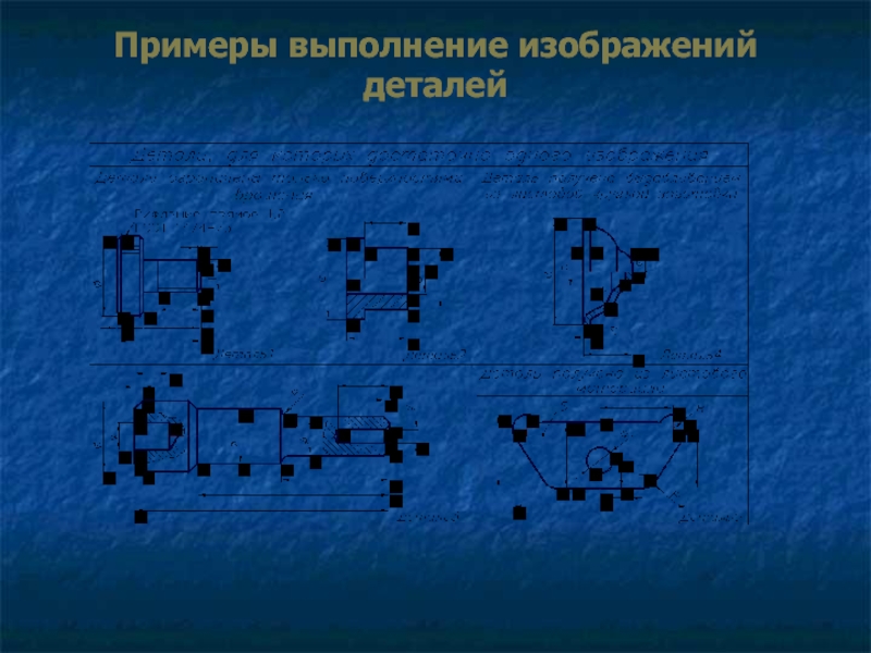 Слайд 53Пример выполнения эскизов деталей и простановка обработки их поверхностей