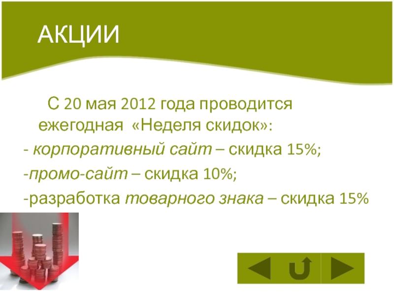а)промосайты; б)корпоративные сайты; в)интернет магазины; г)веб-терминалы.Разработка товарного знака и фирменного стиля;