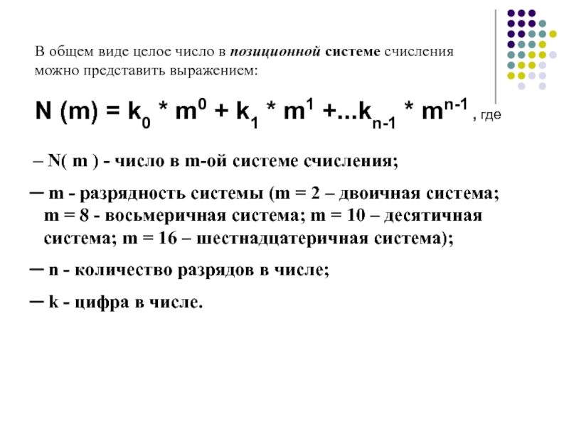 порядок цифры в числе определяется по установленному правилу. Например, непозиционной системой счисления является «римская» система.Позиционной системой счисления, называется система - где порядок цифры в числе определяется рядом степени числа, которое является основанием данной системы счисления.