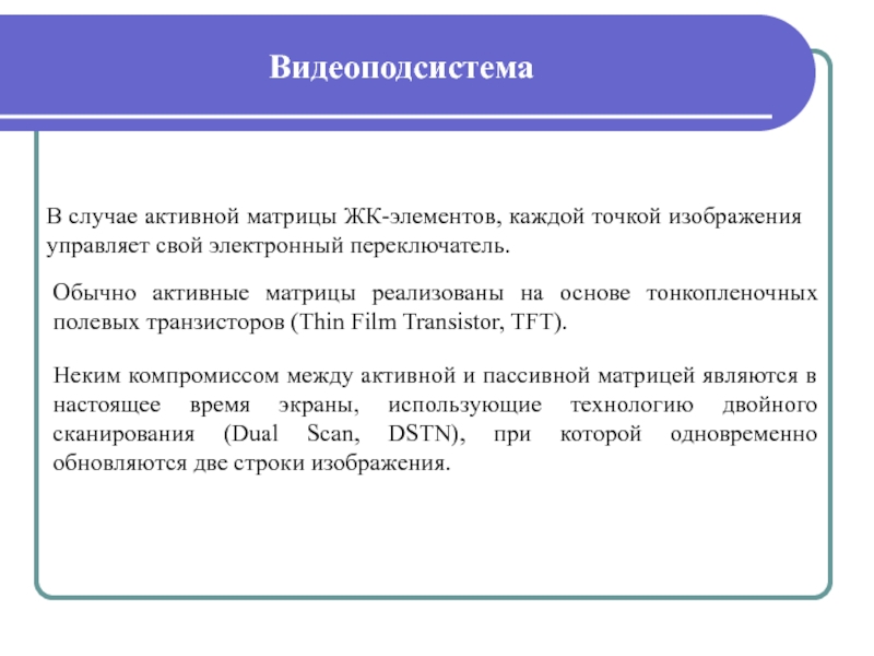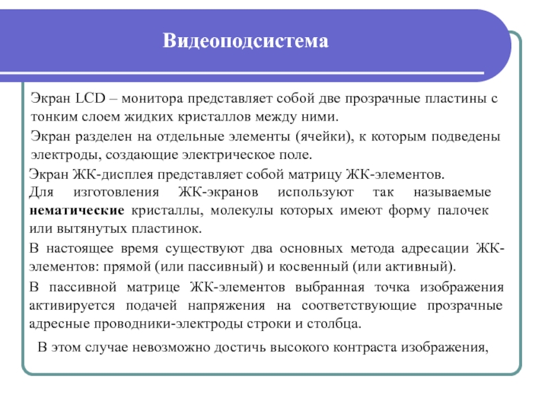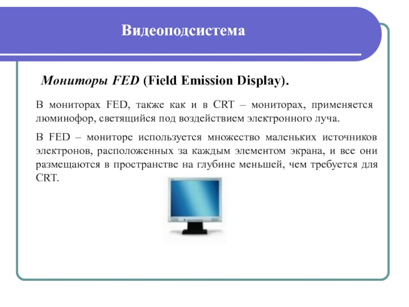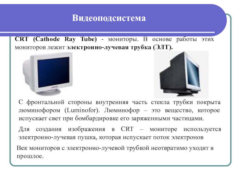 помощью которого производится контроль ввода и обработки информации, а также управление работой программ. По технологии изготовления можно выделить следующие виды мониторов: