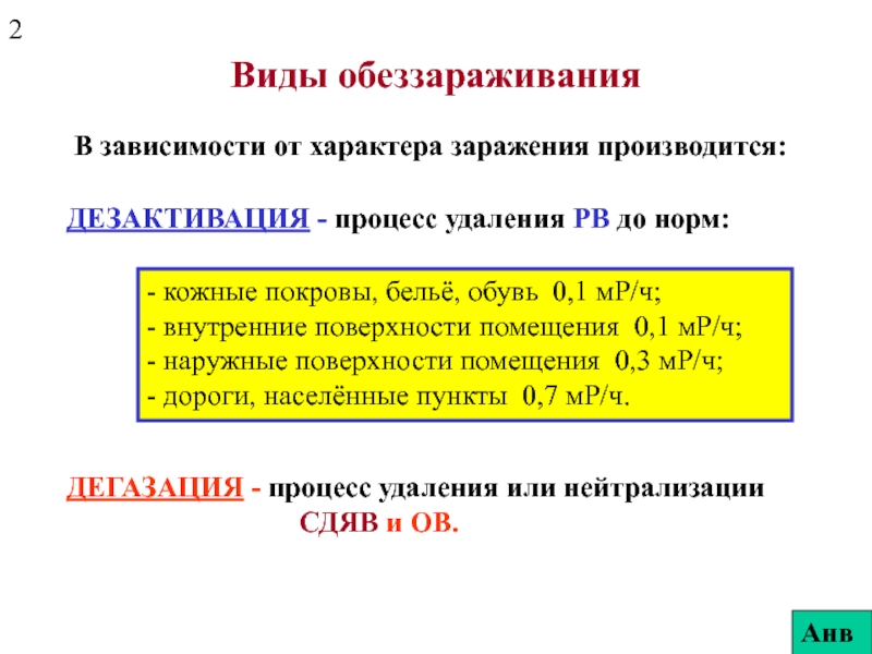 РВ, ОВ и БС местность может быть подвержена заражению. Для обеспечения безопасности людей производится обеззараживание: