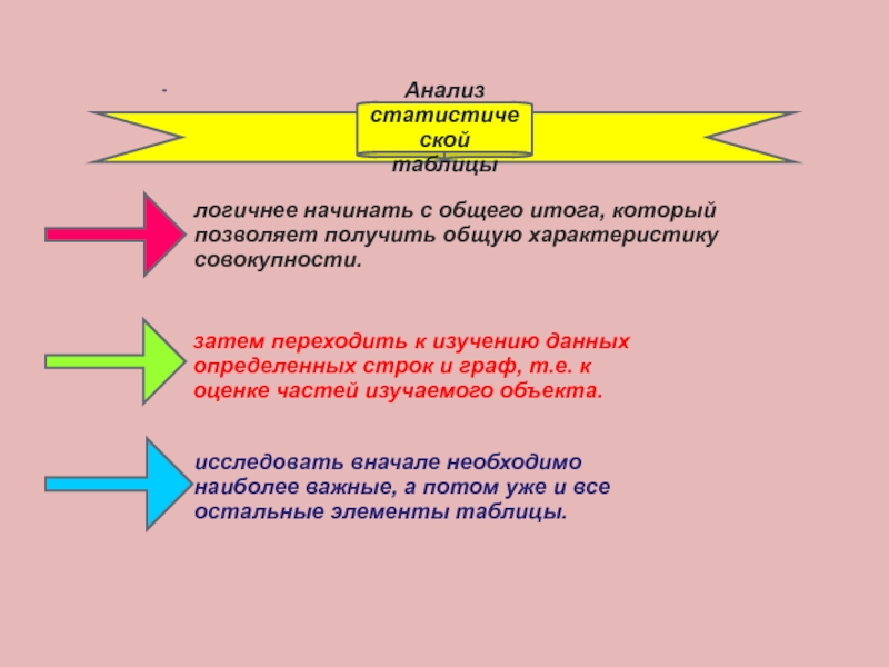 логичнее начинать с общего итога, который позволяет получить общую характеристику совокупности.